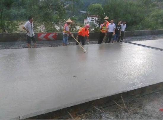 工人们正在用水泥修路