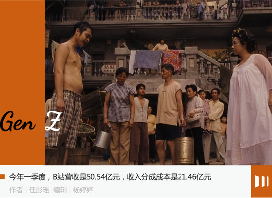 以 2022 年一季度为例,B 站整体营收 50.54 亿元,同比增长 30%。收入分成成本 21.46 亿元,同比增长 53%。