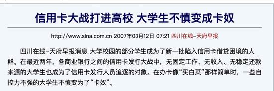 2007.年,在大学生群体里,使用信用卡消费风靡一时,仅上海的银行,当年就发了.17.万张信用卡给大学生。