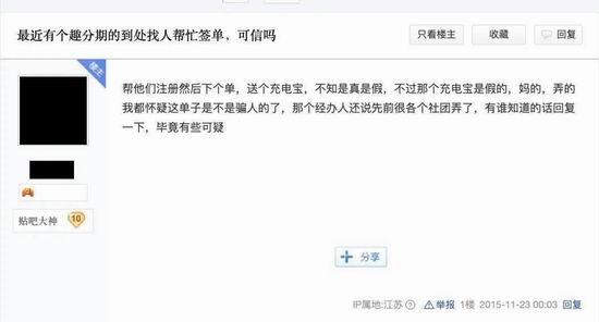当时的大学贴吧里,有人抱怨趣分期靠送充电宝忽悠他们签单,把充电宝拿回寝室一看,还是假的。
