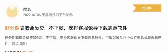 趣分期的遗毒,直到今天在黑猫上依然存在.1555.条投诉。
