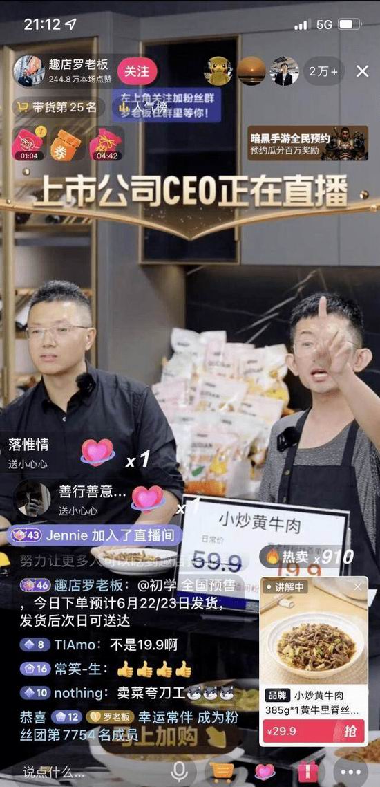 罗敏之所以在直播中."大撒币",按照他自己的说法是为了推广趣店旗下的新业务.--.预制菜。