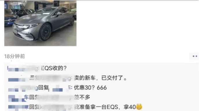 比如福建宁德一家奔驰 4S 店直接公开放话,奔驰 EQS 降价 10 万。