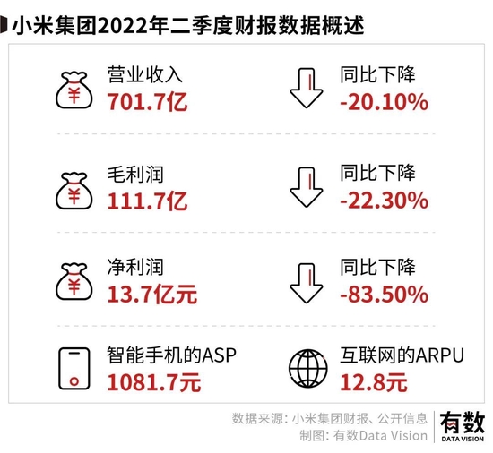 因此,手机业务的遇冷,也直接导致了.IOT.与生活消费业务以及互联网业务,均首次出现同比下滑。而三大业务的下滑,最终使得小米上半年净利润出现了脚踝斩,相较去年上半年同比下滑超.90%。