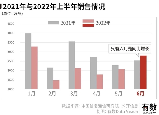 与之相对的,是今年上半年国内手机出货量为.1.36.亿部,同比下降.21.7%。