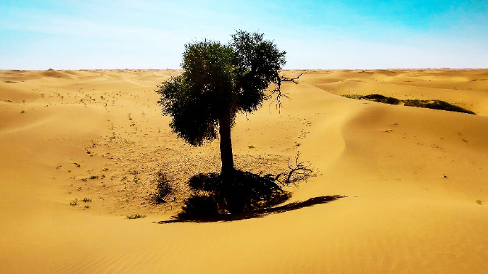 当别人满是质疑,觉得沙子里种不出树时,吴向荣总会跑到."一棵树".下面呆一呆。冥冥中,他总觉得这棵延续了.300.多年的生命力量,一直在鼓舞着他坚持,不要丧失信心。