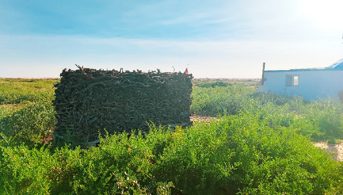 2003.年开始,他在腾格里种了第一棵树。十几年来他积攒了大量沙漠种树的经验,打算原封不动复制到哈根高勒。