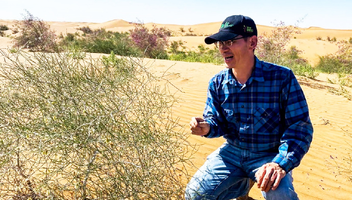 巴特是这片沙漠里最孤独的巡护员。但花棒花开后,他也变成最幸福的巡护员。