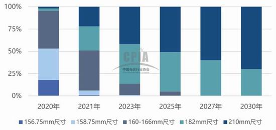 硅片不同尺寸市占率预测,CPIA.中国光伏行业协会