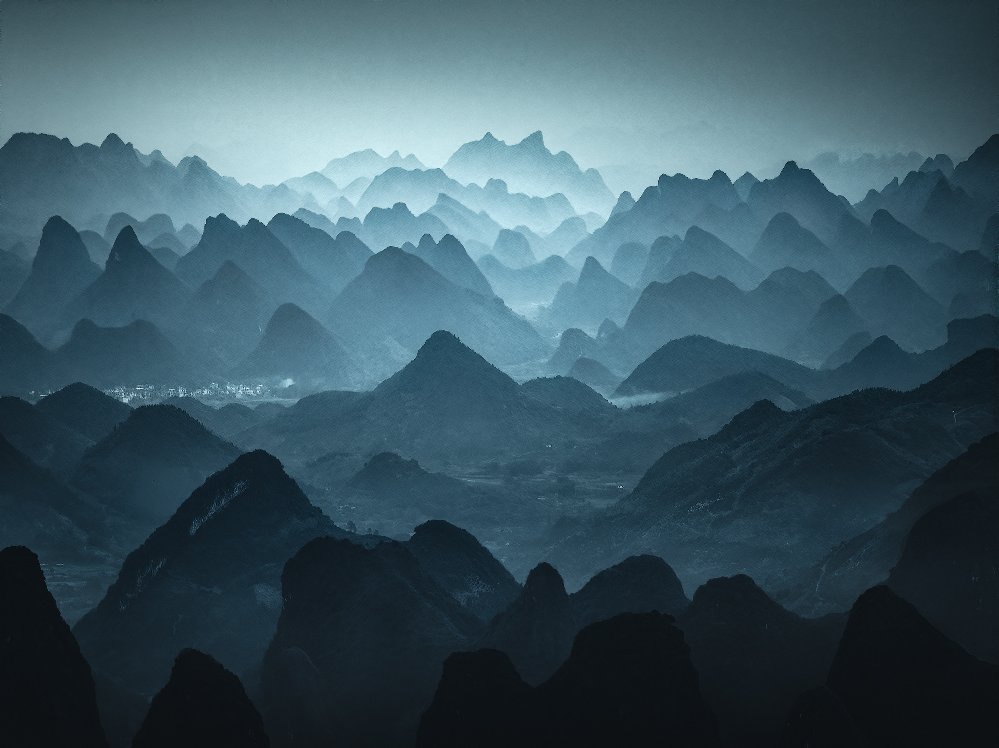 不过要拍到这样的照片需要很高的高度让山峰互不遮挡,同时需要长焦来压缩画面。因此这张是我爬山 500 米再把无人机飞到最高的 500 米极限后,用 7 倍长焦拍摄的。