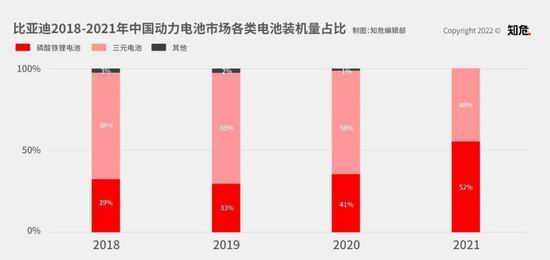 更便宜、更安全的磷酸铁锂电池市场占有率开始提高, 到 2021 年,磷酸铁锂电池的装机量超过了三元锂电池。形势比人强,靠三元锂电池起家的宁德时代,也开始加码布局磷酸铁锂电池。