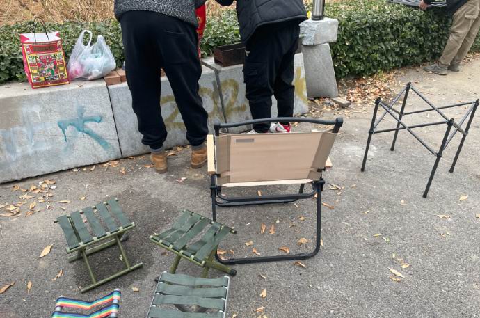 烧烤聚会持续到下午四点,带来的食物都吃光了。几人将掉落在地上的卫生纸、烟头装进垃圾袋,扔到两百米外的垃圾桶。这是开网约车形成的习惯,保持清洁卫生。