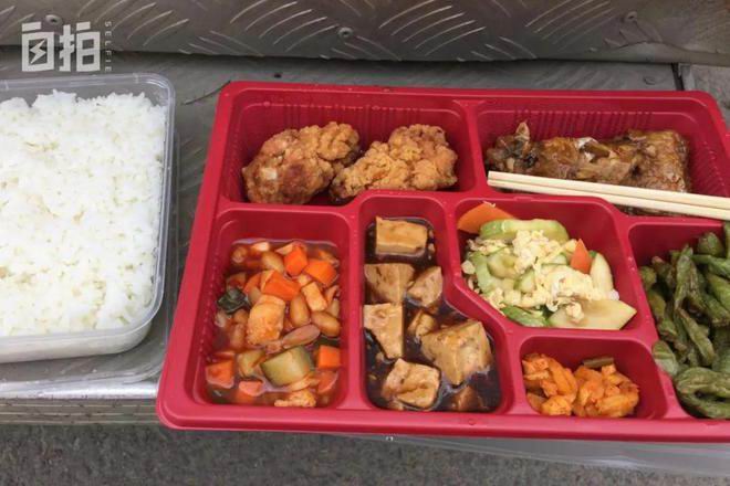 这是我吃过的比较好的盒饭,当时把面包车后边踏板当餐桌,吃到一半,汽车开走了。