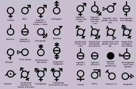 现如今,欧美的性别早就已经超越了男女和LGBT这六种,发展出几十种,甚至几百种之多。