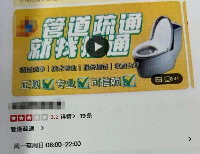 简单跟大家说一下大致过程,诈骗团伙先是在某宝上开一个店铺,挂一个疏通剂的链接,原价才 4 块多,但愣是写上四五百的价格,然后以刷单、刷好评的方式,提高商品的好评率和销售量。接着再找一个家政公司,挂到类似 XX 同城这样的生活服务平台上,放一个管道疏通的上门服务,给一个七八十块的参考价格。