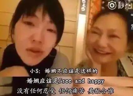 小 S 怀第一胎的时候,许雅钧逛夜店被拍到,当她在镜头前说:「婚姻应该是轻松且愉快,没有任何忍受,任何痛苦,也不需要配合谁。我觉得婚姻不应该是我现在这样的。」的时候,身旁的母亲在劝她「看开点」。