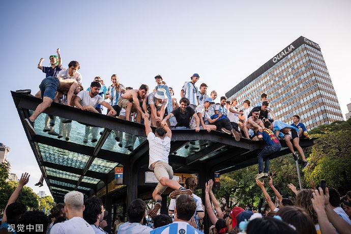 当地时间 12 月 18 日,阿根廷队乘坐大巴在多哈街头举行了巡游,享受了球迷的欢呼,随后他们还将在回到阿根廷之后举行冠军游行。