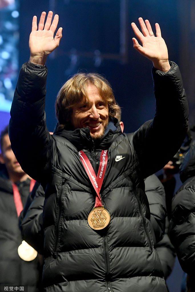 12 月 19 日,莫德里奇也和回国后的克罗地亚队举行了集会活动,接受祖国球迷的欢呼。