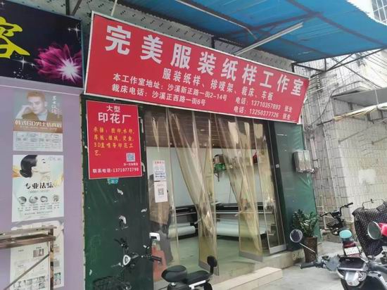 村里这些纸样店就是做这样的生意,承接客户需求,画出纸样并制作小量的服装样品,但不负责服装批量制造,因此这些店很多都是 1-2 个人,员工即是老板。
