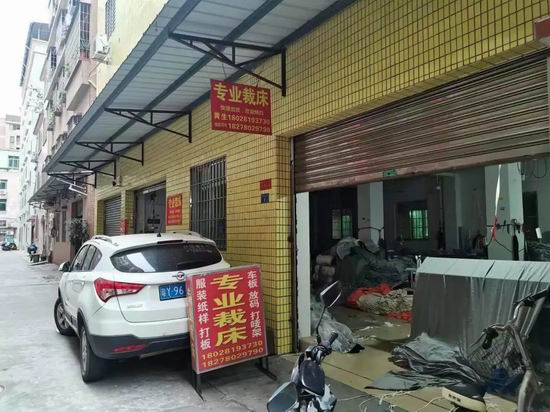 这些厂通常员工不多,只有 3-4 个人,店里一张 8、9 平米大的裁床,一两个人站旁边操作着。