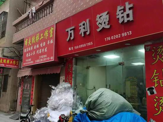 接下来到了烫整这个环节,村里有不少 烫钻店