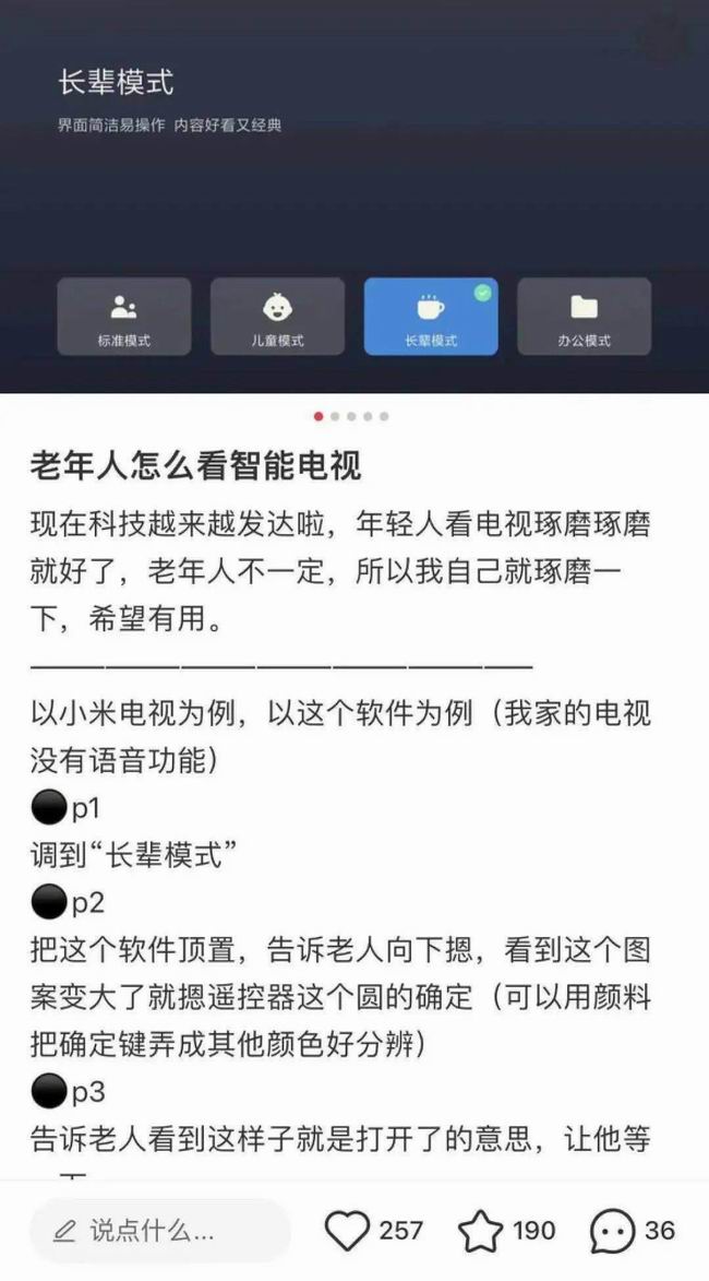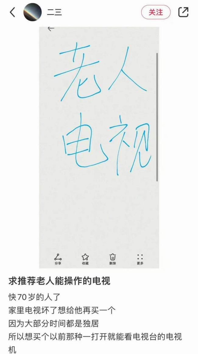 最近,我在小红书上看到一则求助帖,有人问,有没有方便老年人操作的电视机。