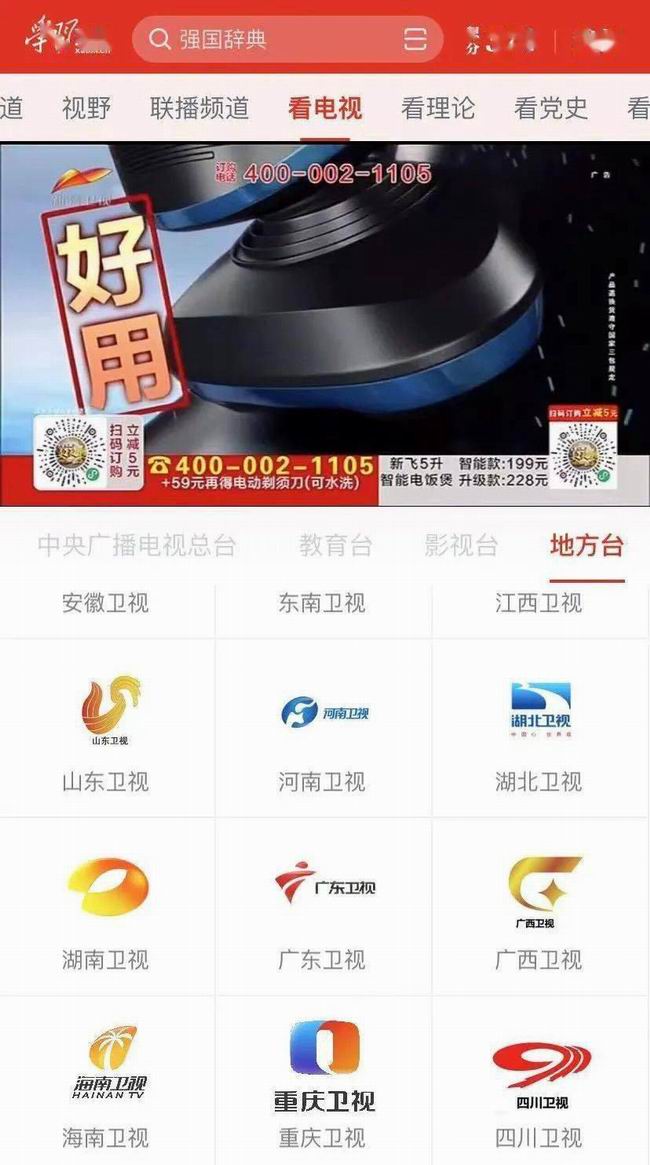 只要下载学习强国的.App,首页找到看电视板块,点进去想看哪个台就能看哪个台,没广告,也没有复杂的操作,老年人爱看的新闻联播、新潮电视剧,都有。