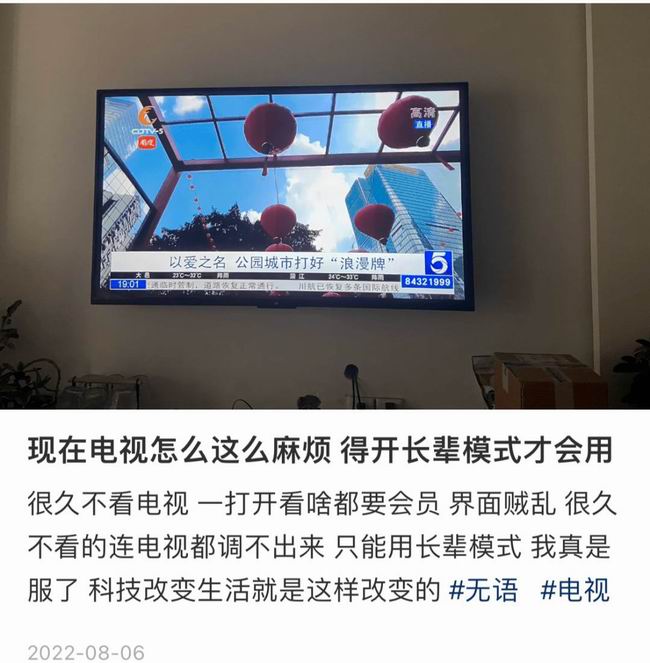 老人无法理解,以前一打开就能放片子的电视,怎么多了."××TV"、开屏广告、频道分区等花里胡哨的东西。