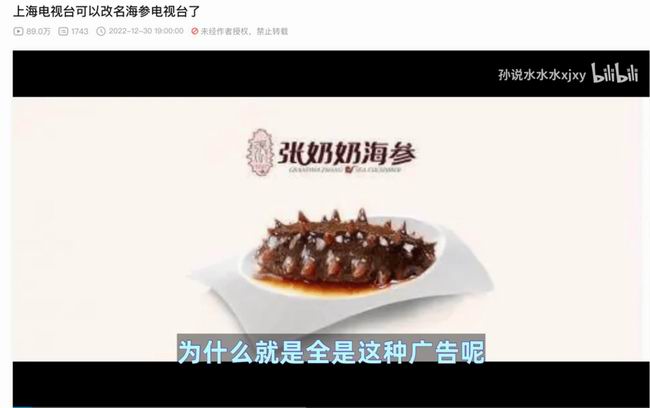 比如有.UP.主说,现在上海电视台.80%.时间都是卖大连张奶奶海参的广告。