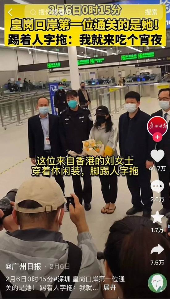 这也不难理解,通关后第一个穿着拖鞋过关的香港人,只是为了来深圳吃一顿夜宵。