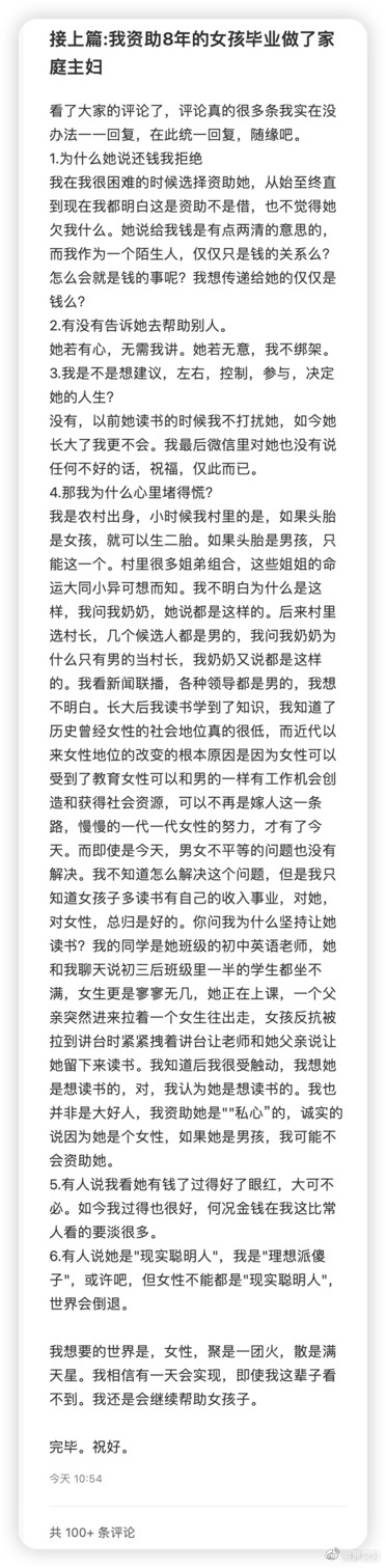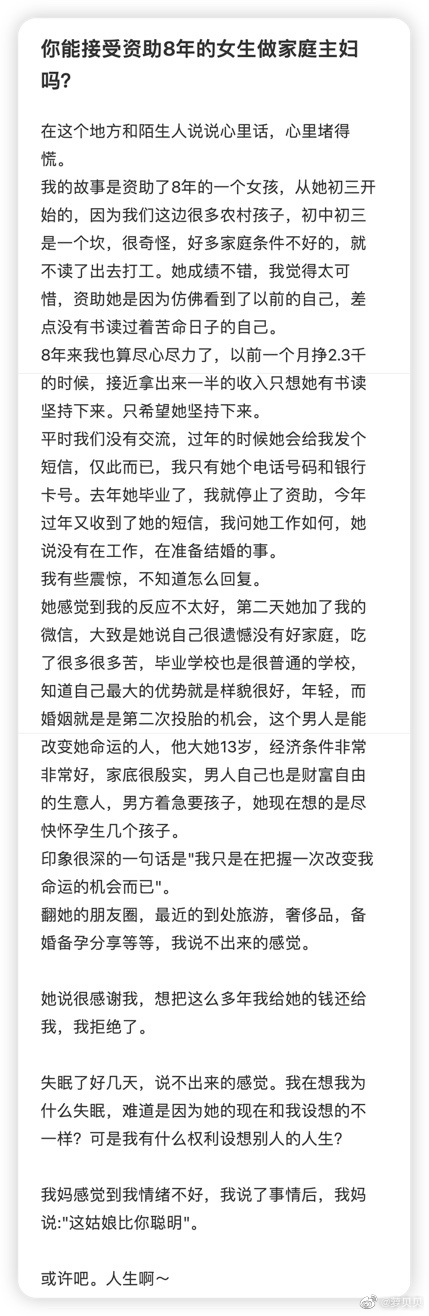 我能理解资助人的不爽和被资助人的选择。