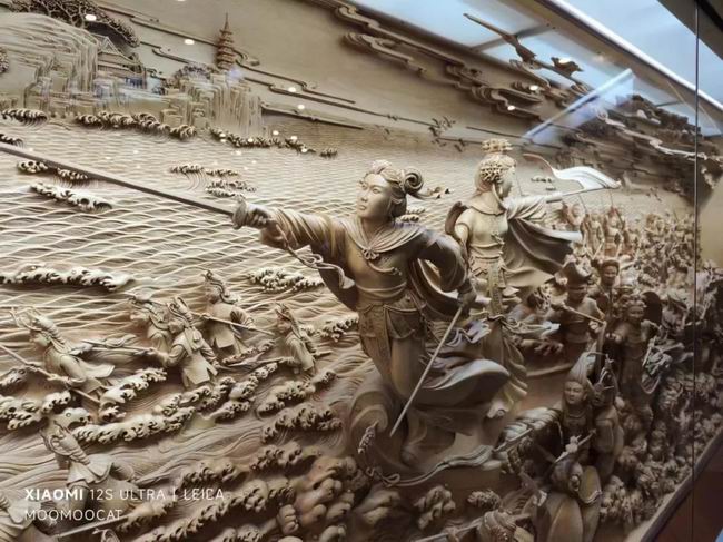 雷锋塔里你可以排队乘电梯至顶层观景,但如果你选择步行上塔的话,可以在第二层看到精美的白蛇传主题木雕,这是我认为雷峰塔里的一大亮点。木雕尺型很大,雕工精美,栩栩如生,很值得一看。
