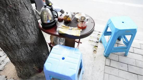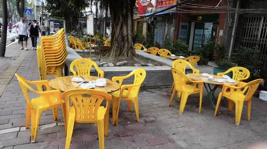 也可以将一张桌子放在骑楼下,成为自己的餐桌,见怪不怪
