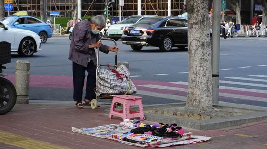你能感受得到他们在这条马路边摆摊已经不是一天两天,基本做的都是长期生意