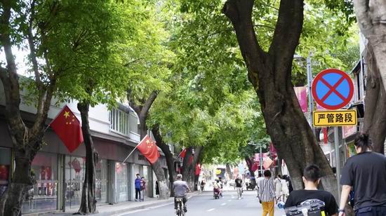 在市中心的越秀区,不管你是特斯拉、玛莎拉蒂、还是小电驴、拉货板车,反正大家共用一条街