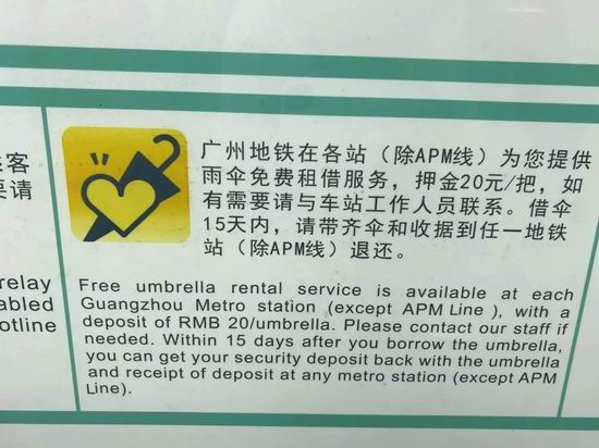 于是我在地铁站看到了这样的服务:向地铁工作人员,免费租借雨伞