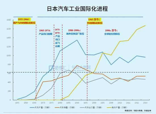1955 年,日本汽车工业体量几乎为 0;1961 年,超过意大利,成为世界第五,1966 年超过英国,1968 年超过西德,1980 年产量突破 1000 万辆,全球占比超过 30%,取代美国成为世界第一。