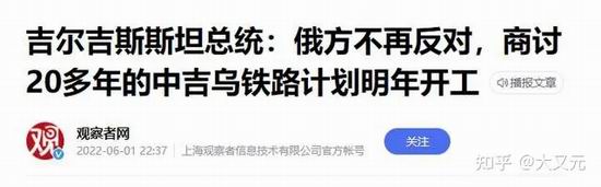 去年6月,吉尔吉斯斯坦总统称,俄方不再反对,商讨 20 多年的中吉乌铁路,将会在2023年开工。