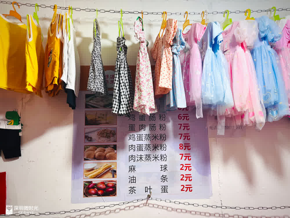 雨势渐渐变小,高文元开始收摊,悬挂在 “6 元 / 份鸡蛋肠粉” 的价格牌前的连衣裙,被他一一摘了下来。