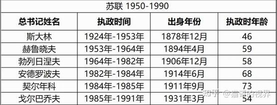 大家看看,从60年代开始到1985年,苏联最高领导人都是00后与10后,85年接班的戈尔巴乔夫是30后,中间的20后没有了!