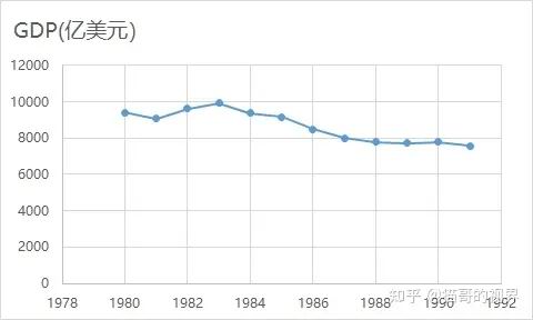 苏联经济从80年代初开始就不行了,1983年苏联的GDP接近1万亿美元,到了1991年已经掉到只有7500亿美元了,9年时间经济规模打了75折。