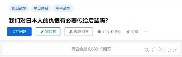 我们对日本人的仇恨有必要传给后辈吗?这是一个在网络上非常热门的话题。