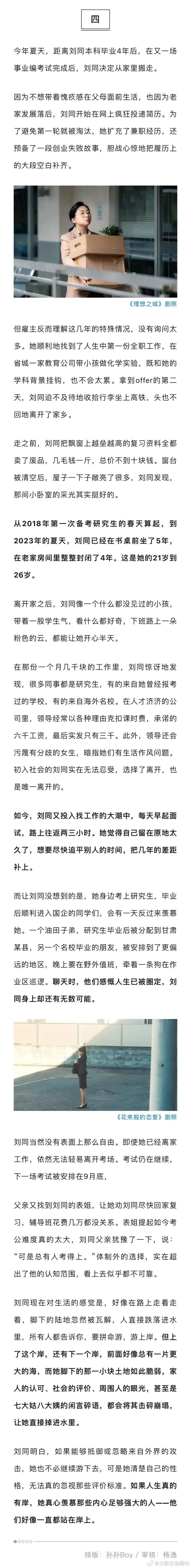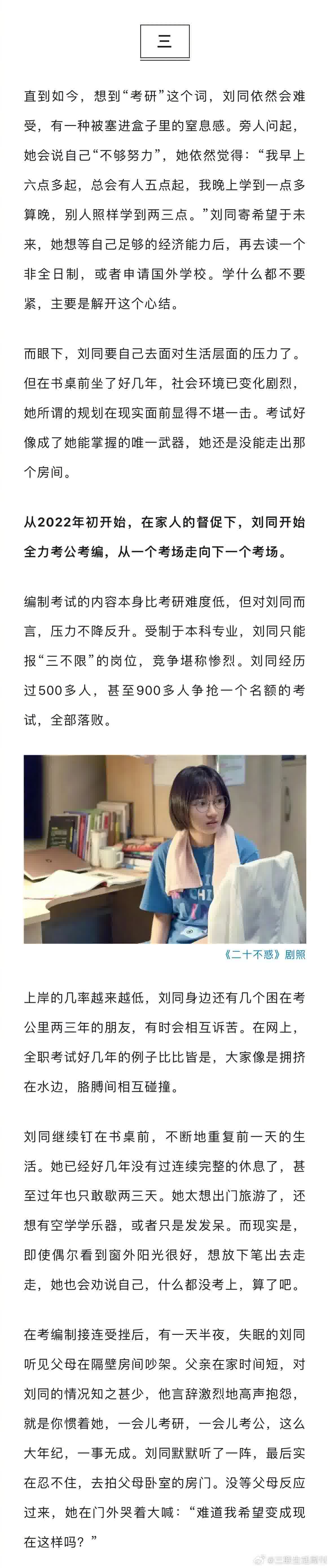 大学毕业后的四年,刘同绝大多数时间都是在老家那间 10 平米的小卧室里度过的。从 2018 年第一次备考研究生的春天算起,到 2023 年的夏天,她已经在书桌前坐了 5 年,在老家房间里整整封闭了 4 年。这是她的 21 岁到 26 岁。