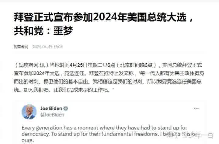 拜登都已经宣布自己将要再次竞选总统,参加2024年大选了。