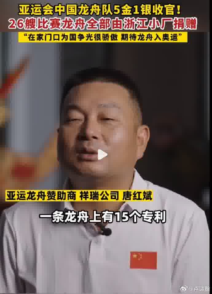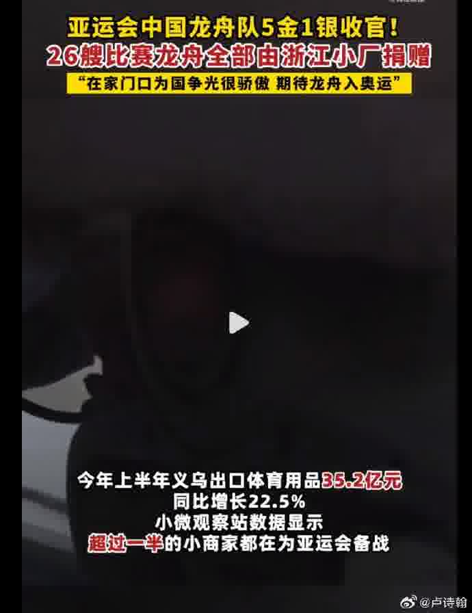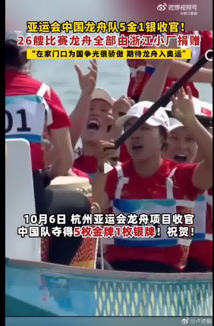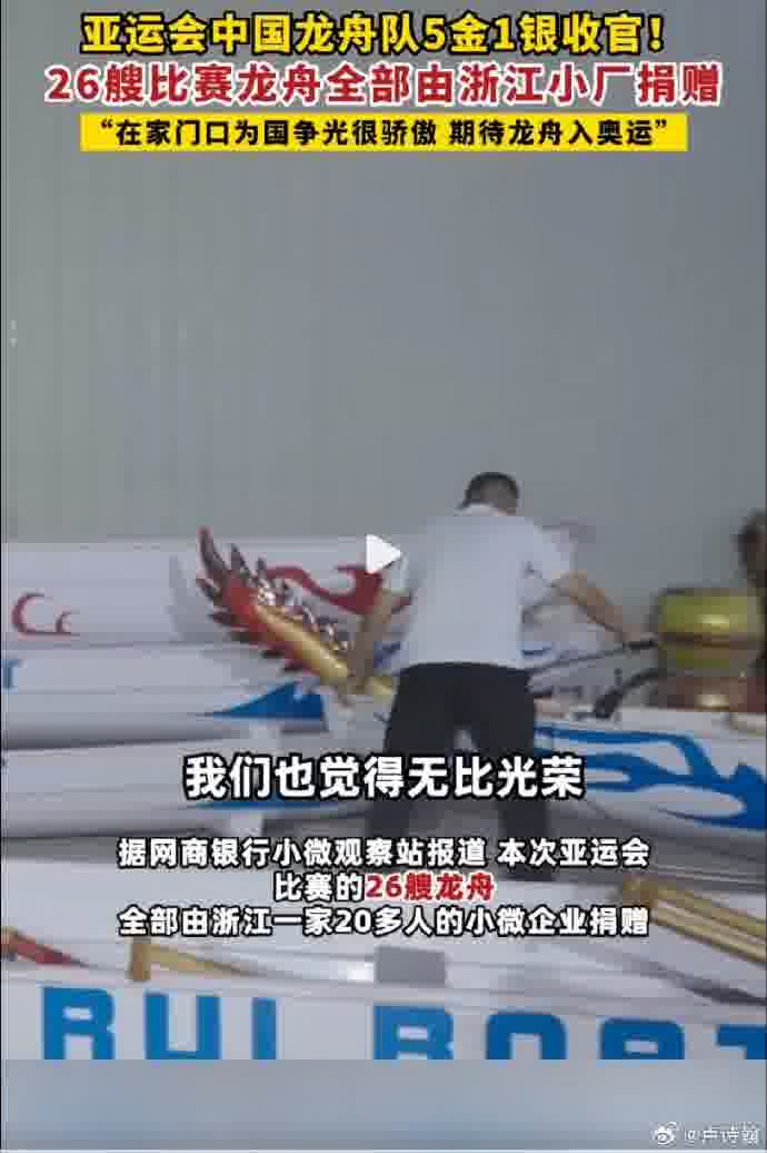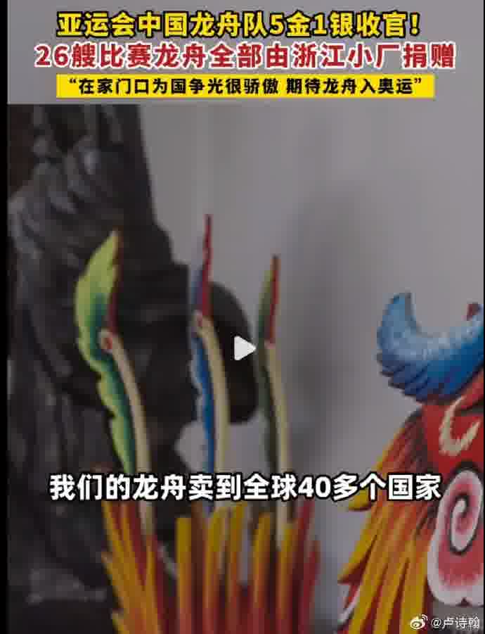 @卢诗翰:#亚运冠军龙舟来自浙江小厂 ## 中国女子龙舟 1000 米金牌#