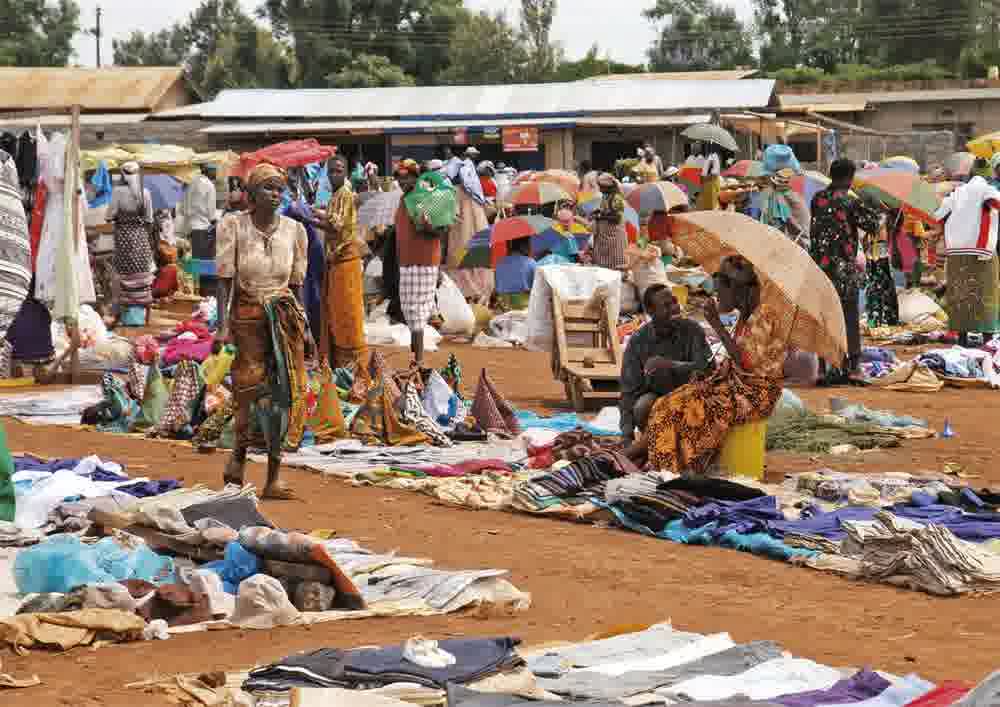 肯尼亚邻国坦桑尼亚的乞力马扎罗地区,商贩们在露天市场售卖进口二手衣