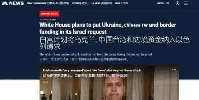 在俄乌冲突的节外再生出巴以冲突这一枝来就已经够要命的了,但是事情到了这个节骨眼上了拜登政府还不能急,因为往后还有的是他们要急的。上周我在美国的NBC新闻网上看到一篇报道,说是白宫那边准备在国会上搞大动作:要钱,要很多很多的钱,要把这些钱花在4个方向上。除了乌克兰和以色列之外,还有中国台湾省以及美墨边境。