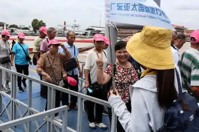 ▲当地时间 2023 年 10 月 7 日,泰国曼谷,中国游客在湄南河附近排队登船。图 / 视觉中国