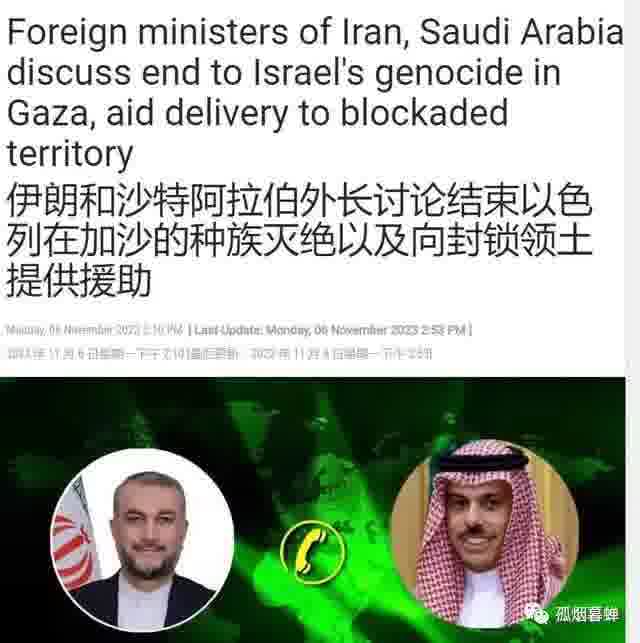 另据伊朗媒体“新闻频道”(PressTV)报道,当地时间11月6日,伊朗外长阿米尔-阿卜杜拉希安和沙特外长法尔汉进行了通话,两人就即将到来的伊合组织紧急峰会上可能要展开磋商的相关事宜,尤其是巴以问题提前交换了意见。在通话中,沙伊两国外长就本轮巴以冲突的相关话题达成了诸多共识,包括共同强调有必要制止以色列对加沙地带犯下的战争暴行,并向受战火殃及的巴勒斯坦人民持续提供人道主义援助等。