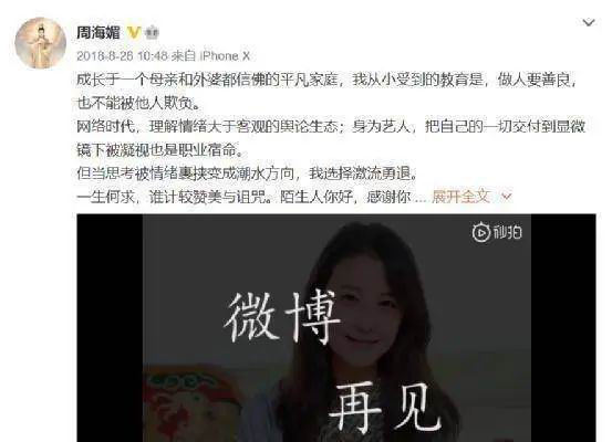 只是她 2018 年退出微博的最后头条,还是用了当年《义不容情》里陈百强的那首歌:一生何求,谁计较赞美与诅咒。